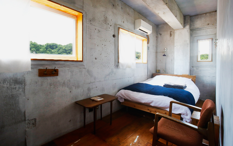 Cette chambre aux trois fenêtres est tout particulièrement claire, et l’on peut y apercevoir le ciel étoilé de Kamakura depuis son lit, d’un simple regard au dehors.